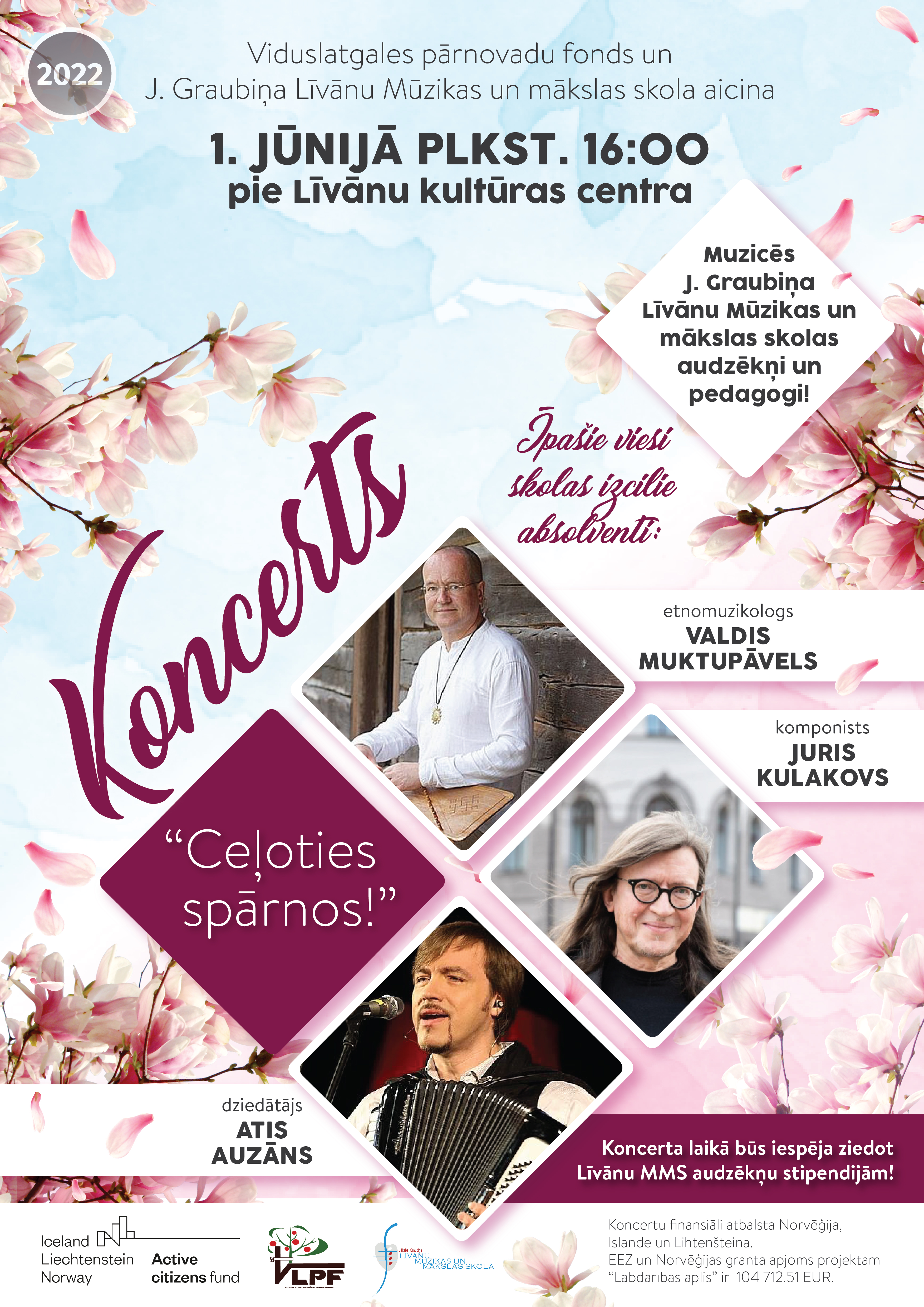 Koncertēs J. Graubiņa Līvānu Mūzikas un mākslas skolas audzēkņi, pedagogi un izcilie absolventi – pazīstami un iemīļoti mūziķi: komponists Juris Kulakovs, etnomuzikologs Valdis Muktupāvels un dziedātājs Atis Auzāns.