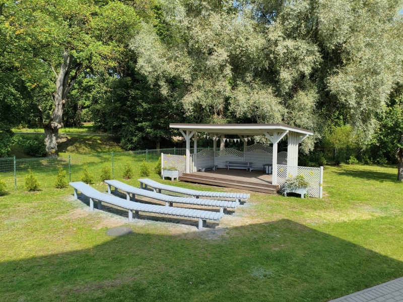 Spītējot šī gada laikapstākļiem, skatītāju soliņu izbūve pie āra skatuves ir noslēgusies. Soliņu izbūvē tika izmantoti pēc iespējas dabiski materiāli, soliņiem tika veikta arī apstrāde ar krāsu. Būvniecība tika realizēta brīvdienās, kad bērnudārzs ir slēgts.