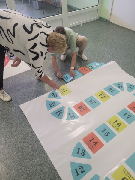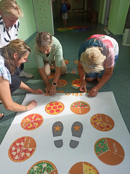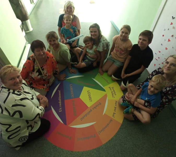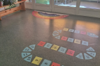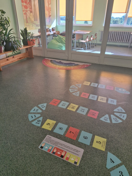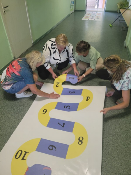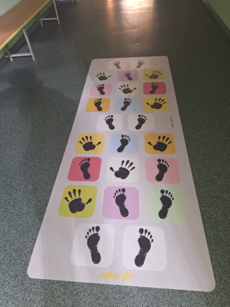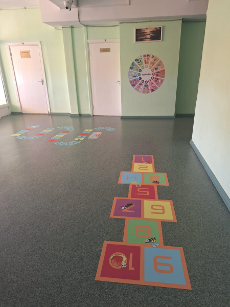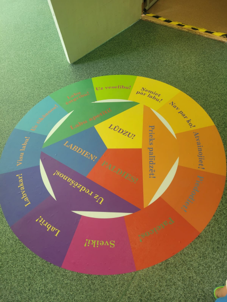 Projekta ietvaros tika pasūtītas izgatavošanai 9 laminētas grīdas uzlīmes, gan izglītojošas, gan sportiski aktīvas - Attēlo mani, Klasītes, Vitamīnu aplis, Labo vārdu aplis, Līdzsvara taka mazākiem, Transportieris, Vingrošanas ceļš, Kalkulators, Čūskas spēle. Augustam noslēdzoties un ļoti gaidot Zinību dienu, kad bērni atgriezīsies skolā, vecāku padome un sākumskolas skolotāji čakli darbojās pie uzlīmju līmēšanas. Mērķauditorija ir sākumskola (1. - 4.klase) un pirmsskolas grupa. Tāpēc grīdas uzlīmes ir izvietotas gaitenī, kur atrodas šīs klases. Ar šāda veida uzlīmju palīdzību bērni gan iegūs jaunas zināšanas, gan arī nostiprinās esošās, jo katru dienu redz un darbojas ar šādiem izglītojošiem uzdevumiem.