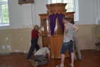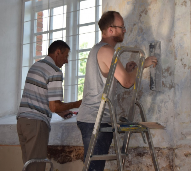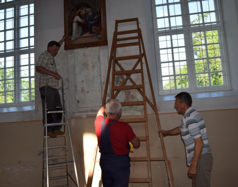 19. jūlijā iniciatīvas grupas dalībnieki (Juris Spūlis, Iveta Stivriška, Skaidrīte Medne, Andris Lazdāns, Anita Brakovska, Aija Bitinas, Ainārs Gavars, Anna Vanaga, Jānis Brakovskis) pulcējās uz talku, kad baznīcas bojātās sienas tika attīrītas no vecās krāsas un apmetuma un tika izvākti gruži. Pēc tam tika veikto sienas špaktelēšanas, apmešanas, slīpēšanas un krāsošanas darbi, kas tika pabeigti 27. jūlijā.