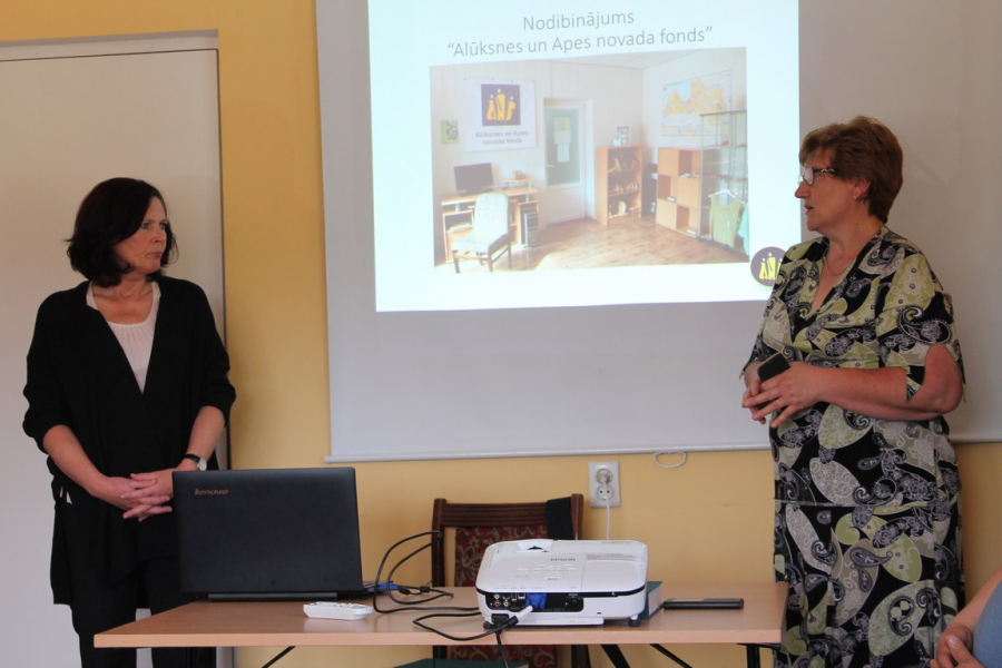 7.jūnijā notika tikšanās ar Apes un Alūksnes novada fonda (AANF) valdes, Uzraudzības padomes locekļiem , brīvprātīgajiem, ziedotājiem, kā arī Apes novada pārstāvjiem. AANF dibināts 2005.gada 25.aprīlī . Tikšanās laikā prezentācijas veidā iepazināmies ar fonda metodēm līdzekļu piesaistei no uzņēmumiem un privātpersonām, lai finansētu vietējos projektus, informāciju, kā izglītot sabiedrību par labdarības nozīmi. Mūsu fondu ļoti ieinteresēja ideja par labdarības erudīcijas spēli "Prāta laboratorija". Šosezon dalībnieki 8 ikmēneša spēlēs un vienā Apes pilsētas svētku spēlē saziedojuši krietnu naudas summu fonda labdarības projektiem. Iepazināmies AANF jauno praksi no šā gada 1.marta no visiem Fondam ziedotajiem līdzekļiem turpmāk 5% novirzīt fonda darbības nodrošināšanai. Līdzīgu praksi īsteno vairākas organizācijas, lai spētu nodrošināt savu darbību ilgtermiņā. Interesanti bija iepazīties ar Apes senioru grupa "Tandēms" realizētajiem projektiem, viena no tiem ietvaros izveidota satikšanās un darbošanās vieta senioriem. Apskatījām arī tikko atklāto bērnu spēļu laukumu, kur izveidota sajūtu taka, karuselis u.c. atrakcijas. Turpinājumā devāmies uz Alūksni, kur Alūksnes novada Sabiedrības centrā kopā ar fonda, pašvaldības un ziedotāju pārstāvjiem turpinājās sarunas par metodēm līdzekļu piesaistē no uzņēmumiem un privātpersonām, vietējo projektu finansēšanai, par to kā izglītot sabiedrību par labdarības nozīmi vietējās kopienas attīstībā. Dienas noslēgumā devāmies ekskursijā pa Alūksni. Mūsu delegāciju sajūsmināja aktivitātes Alūksnes Bērnu un jauniešu centrā, kur ir gan mājīgs, gan radošs telpu iekārtojums , kas veicina jauniešu iniciatīvu un aktivitātes. Te darbojas džambas, LEGO robotikas, animācijas darbnīcas u.c. interesanti pulciņi. Iepazināmies arī ar ārzemju skolēniem, kas mūs uzrunāja latviešu valodā! Alūksnes Kultūras centrā apskatījāmies lielo zāli, kur ir 468 sēdvietas, koru zāli. Apmeklējām Alūksnes Mākslas skolu, kas ir profesionālās ievirzes izglītības iestāde, kas attīsta zināšanas, prasmes un vērtību orientāciju mākslā. Pasniedzēja iepazīstināja ar renovētajām telpām, labiekārtoto teritoriju ap ēku, kur restaurēti un atjaunoti dažādi dārza elementi (vāzes, lodes, kāpnes), kā arī jauniešu mākslas darbiem.
