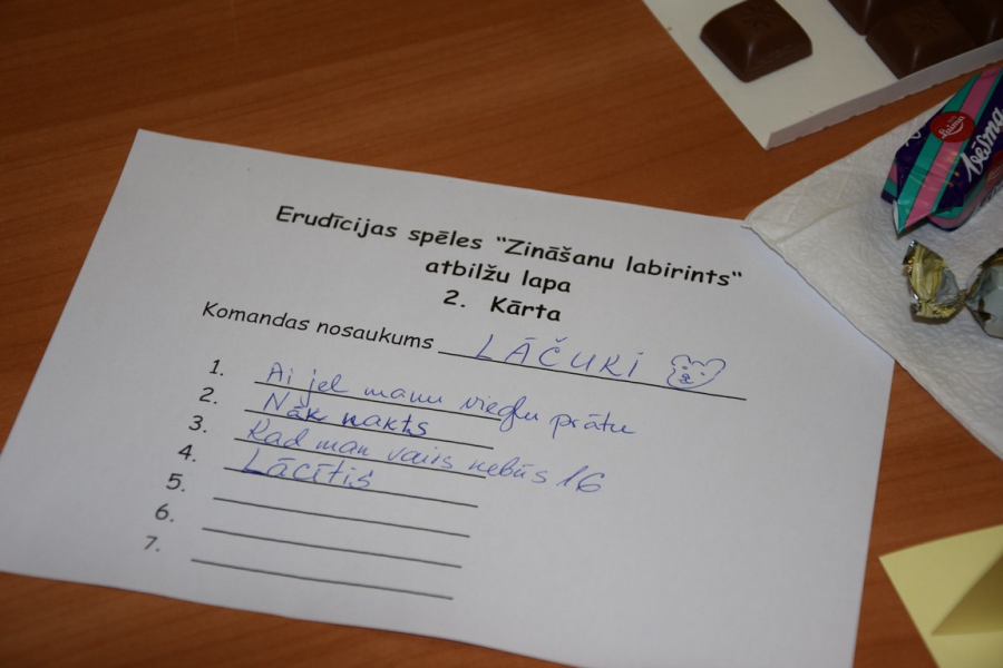 Pirmā erudīcijas spēle Preiļos “Zināšanu labirints” veiksmīgi aizvadīta. Kopumā piedalījās 14 komandas. Spēlei bija 10 kārtas, katrā pa 7 jautājumi. Lielākais punktu skaits ko varēja iegūt bija 70. Komandu sacensībās 1. vietu ar 59 punktiem ieguva komanda “Lapsas”. 2. vietu ‘’Vakarējie”, 3. “Atbilžu mednieki”. Visas trīs vietas saņēma balvas, ko bija sarūpējuši pasākuma sponsori Preiļu novada Kultūras centrs, Šmakovkas muzejs un SIA “Vienmēr”. Balvas par vizuālo noformējumu saņēma komandas “Jestrās vecmāmiņa”, “Lāčuki”, “Pūces” un “Pasaciņa”.