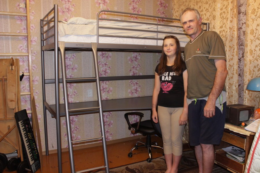 Tētis Igors ar meitu Leldi dzīvo Līvānu pilsētā . Ģimenes galva Igors ir smagi slims un daudz līdzekļu tiek tērēti medikamentu iegādei.Sadzīves apstākļi ir trūcīgi, taču tēvs iespēju robežās dara visu iespējamo, lai meitai nekā netrūktu.Leldei ir ļoti darbīga un centīga, sevišķi viņai patīk nodarboties ar kikboksu – tas ir meitenes mīļākais sporta veids. Ģimenīte dzīvo 1-istabas dzīvoklī un lai paplašinātu telpu bija ļoti nepieciešama divstāvīgā gulta apvienota ar darba zonu.
