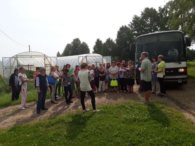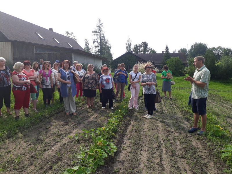 Brauciena sākumā devāmies uz Rožkalnu novadu pie Latvijas Bioloģiskās lauksaimniecības asociācijas vadītāja, bioloģiskās z/s "Salenieki" saimnieka Gustava Norkārkļa. Gustavs uzsvēra, ka tikai turpina saimniekot bioloģiski, kā to darīja viņa senči ,tādejādi nenodarot kaitējumu ģimenei , līdzcilvēkiem, apkārtējai videi. Lielu daļu saimniecības lauku aizņem ķirbji, ko nodot pārstrādei un iegūst sēklas. Nākotnē saimniecībā plāno izgatavot arī ķirbju eļļu. Saimnieks izrādīja paša konstruētās un izgatavotās siltumnīcas, kur aug tomāti un paprika. Ekskursijas dalībnieki izjautāja Gustavu par ķirbju un tomātu šķirnēm, to kopšanu un audzēšanu, kā arī par realizācijas iespējām. Lai gan kartupeļu lauka un audzēšanas un novākšanas tehnikas apskates laikā lija spēcīgs lietus, ekskursanti ar interesi noklausījās Pelēču pagasta zemnieku saimniecības “Ozolīši” saimnieces stāstu par kartupeļu audzēšanu, šķirnēm, glabāšanu un realizēšanu. Evitai Kivriņai nācās atbildēt uz daudz un dažādiem jautājumiem, gan par izturīgākajām šķirnēm, gan kaitēkļu apkarošanu un mēslošanu. Visiem kopā izvērtās spraiga saruna par kartupeļu audzēšanu un potenciālās ražas glabāšanu šajā lietainajā vasarā. Izzinošs un praktisks bija stāstījums par kartupeļu audzēšanas un novākšanas tehnikas pielietojumu saimniecībā. Kivriņu mājas apmeklētājus priecēja arī saimnieces Evitas skaisti sakoptā apkārtne un košumdārzs pie mājas. Pieredzes apmaiņas brauciena „saldais ēdiens” bija Zinaīdas Adamovičas košumdārzs Saunas pagastā, ko viņa pati sauc par kolekciju. Pašas vienkāršākās puķes te ieraugāmas visā savā krāšņumā, jo saimniece ir atradusi vietu, kur tām vislabāk augt un ziedēt. Sētsvidu grezno vairākas apjomīgas dobes, kurās gaumīgās kompozīcijās apvienoti dažādu skujeņu, košumkrūmu un daudzveidīgu ziemciešu stādījumi, guļbaļķu klētiņa apaudzēta ar krāšņām pelargonijām, pie pirts izvietota bagātīga fuksiju kolekcija. Nobeigumā bija iespēja iegādāties iepatikušos ziedu un augu stādiņus, ko ekskursanti aizveda mājās savu dārzu izdaiļošanai. Brauciens noritēja ļoti pozitīvā un draudzīgā gaisotnē. Prieks bija dzirdēt dalībnieku pateicības vārdus par šī projekta lietderību un nepieciešamību.
