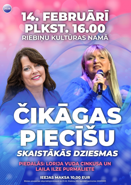 Vēlamies uzdāvināt senioriem iespēju apmeklēt koncertu Valentīndienā, 14. februārī Riebiņu Kultūras namā.